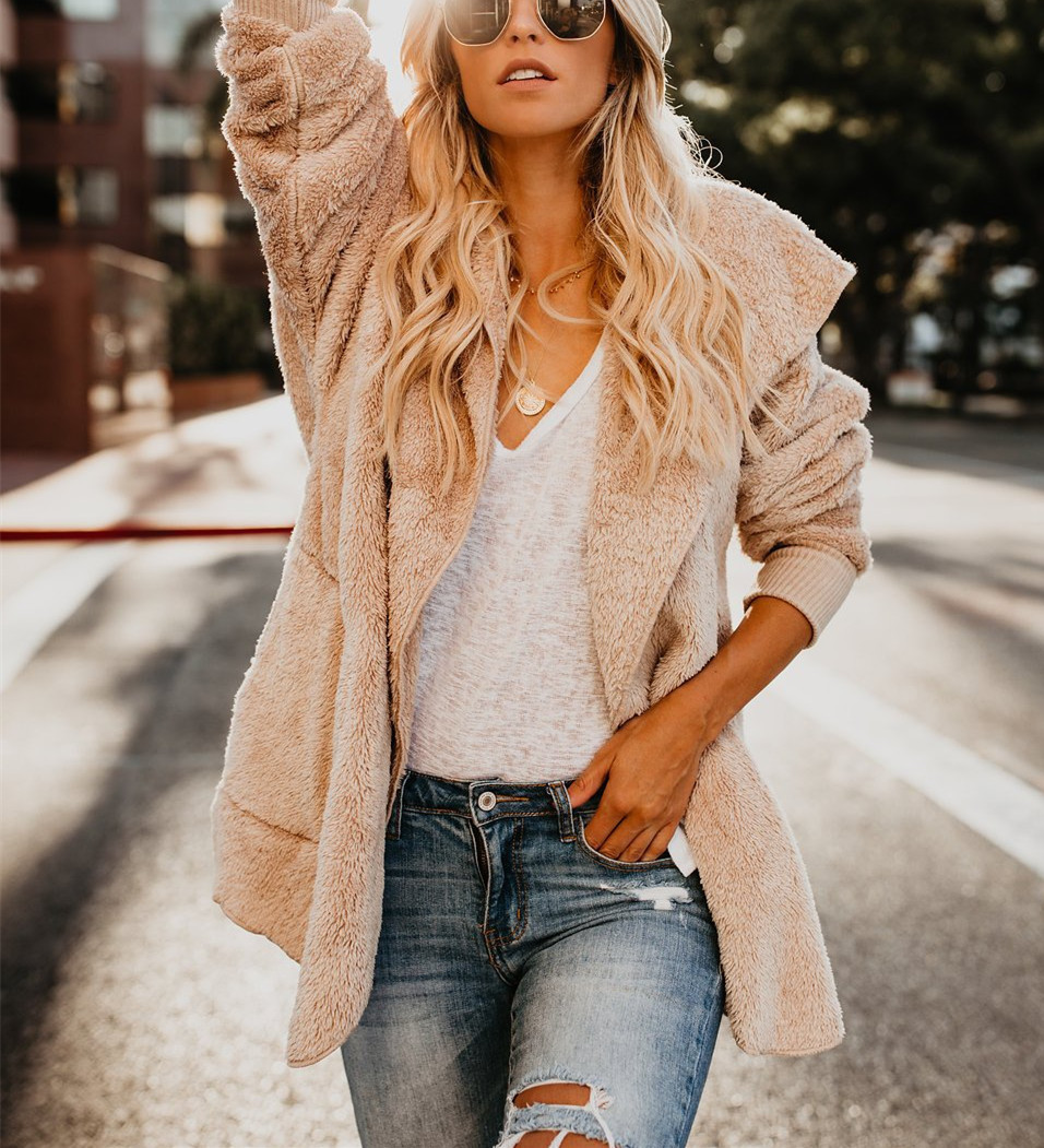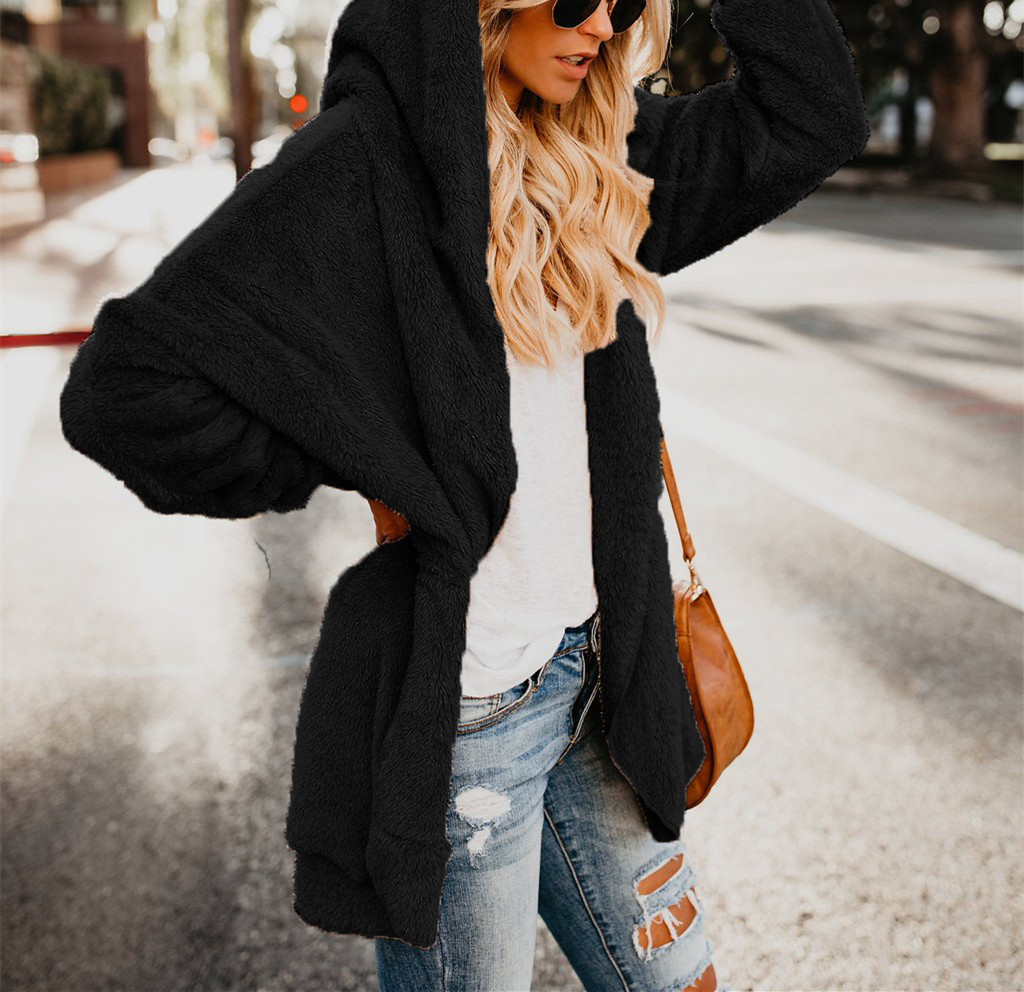 Cap Long-Sleeved Cardigan Pocket Warm Jacket for Women